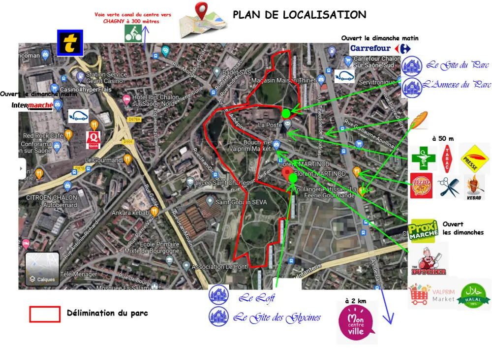Situé à 1 km de la sortie autoroute A6 Chalon centre; les gites sont situés Rue des Glycines et Rue romain Rolland.
